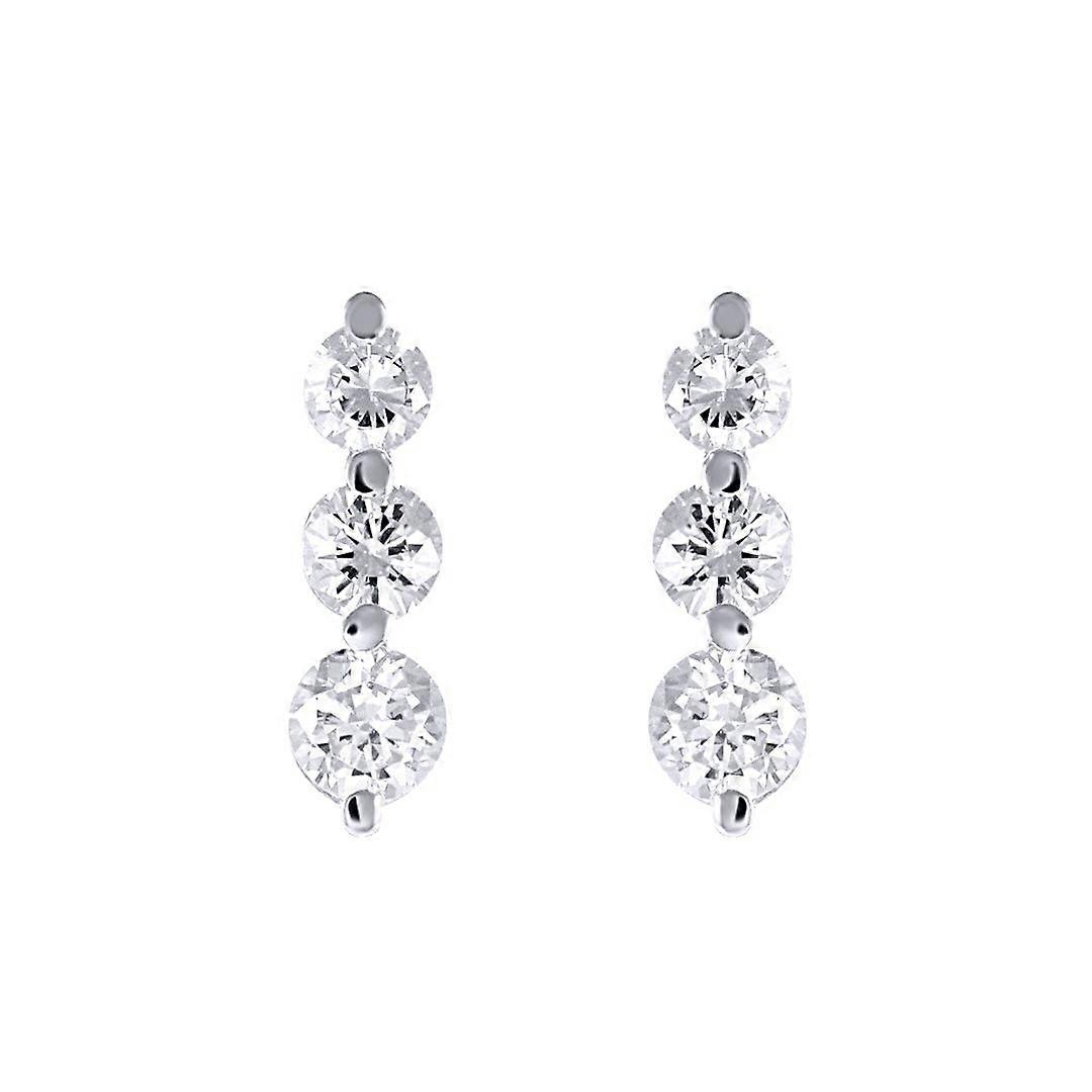Jewelco London Ladies Solid 9ct White Gold White Round Brilliant Cubic Zirconia 3 Stone Trilogy Stud Drop Earrings, 4-5mm