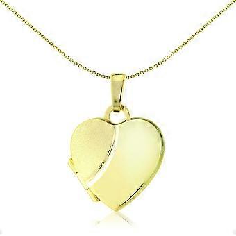 Jewelco London Ladies 9ct Yellow Gold Semi Satin Love Heart Locket Pendant 14mm