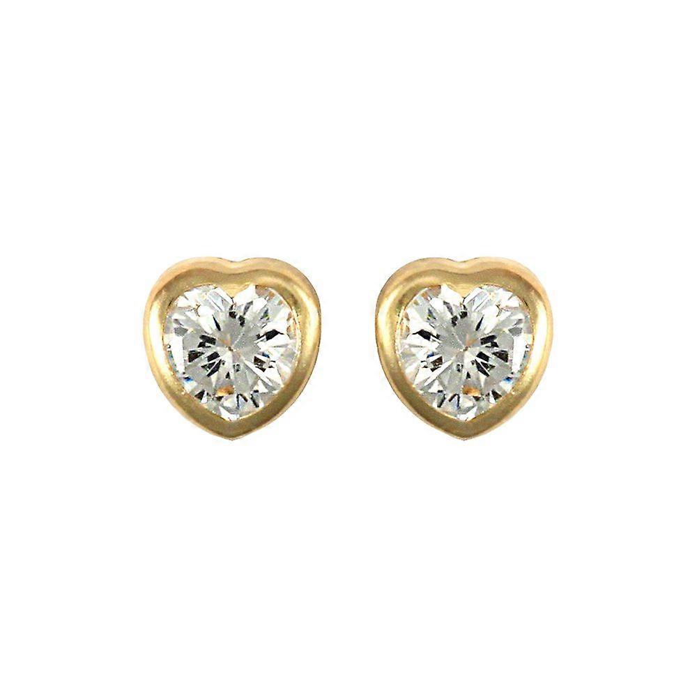 Jewelco London Ladies 9ct Yellow Gold White Heart Cubic Zirconia Rub Over Solitaire Love Heart Stud Earrings