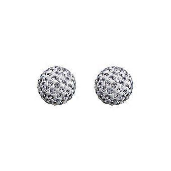 Jewelco London Ladies 9ct Yellow Gold White Round Crystal Disco Ball Stud Earrings, 8mm