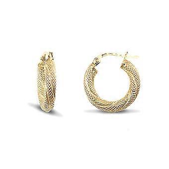 Jewelco London Ladies 9ct Yellow Gold Snake Skin Twisted 3mm Hoop Earrings 16mm