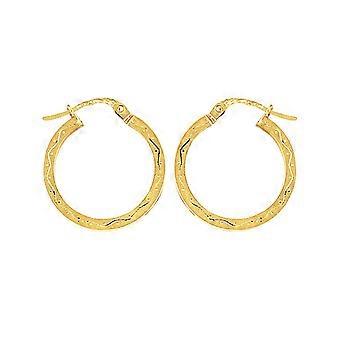 Jewelco London Ladies 9ct Yellow Gold Engraved Square Hoop Creole Earrings 20mm