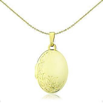 Jewelco London Ladies 9ct Yellow Gold Floral Motif Oval Locket Pendant - 18x14mm