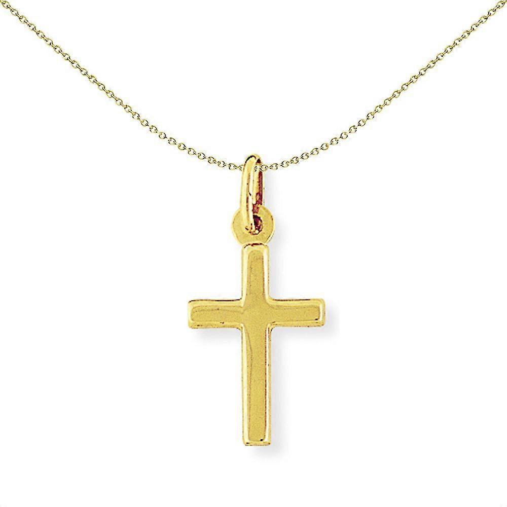 Jewelco London 9ct Yellow Gold Polished Delicate Discreet Cross Charm Pendant 12x25mm