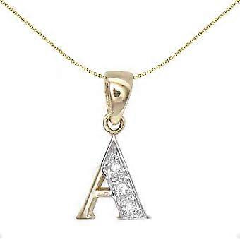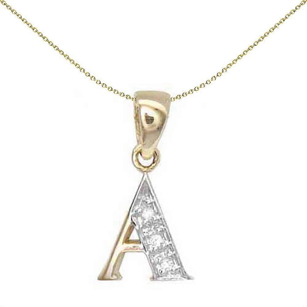Jewelco London 9ct Yellow Gold Pave Set Round H I2 0.02ct Diamond Identity Dainty Initial ID Charm Pendant Letter A