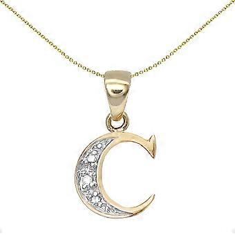 Jewelco London 9ct Yellow Gold Pave Set Round H I2 0.02ct Diamond Identity Dainty Initial ID Charm Pendant Letter C