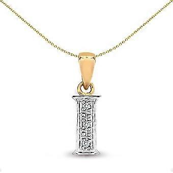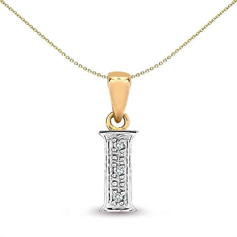 Jewelco London 9ct Yellow Gold Pave Set Round H I2 0.02ct Diamond Identity Dainty Initial ID Charm Pendant Letter I