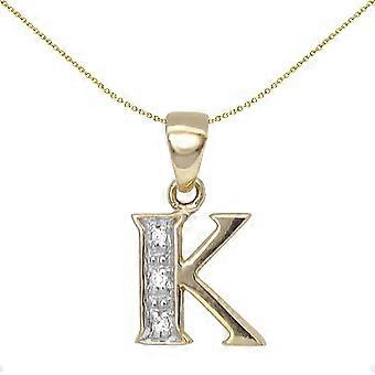 Jewelco London 9ct Yellow Gold Pave Set Round H I2 0.02ct Diamond Identity Dainty Initial ID Charm Pendant Letter K
