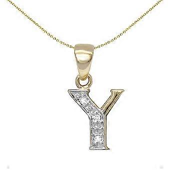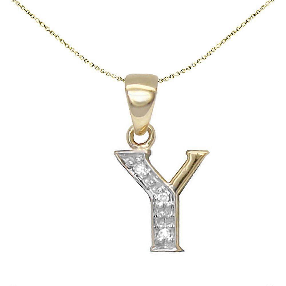 Jewelco London 9ct Yellow Gold Pave Set Round H I2 0.02ct Diamond Identity Dainty Initial ID Charm Pendant Letter Y