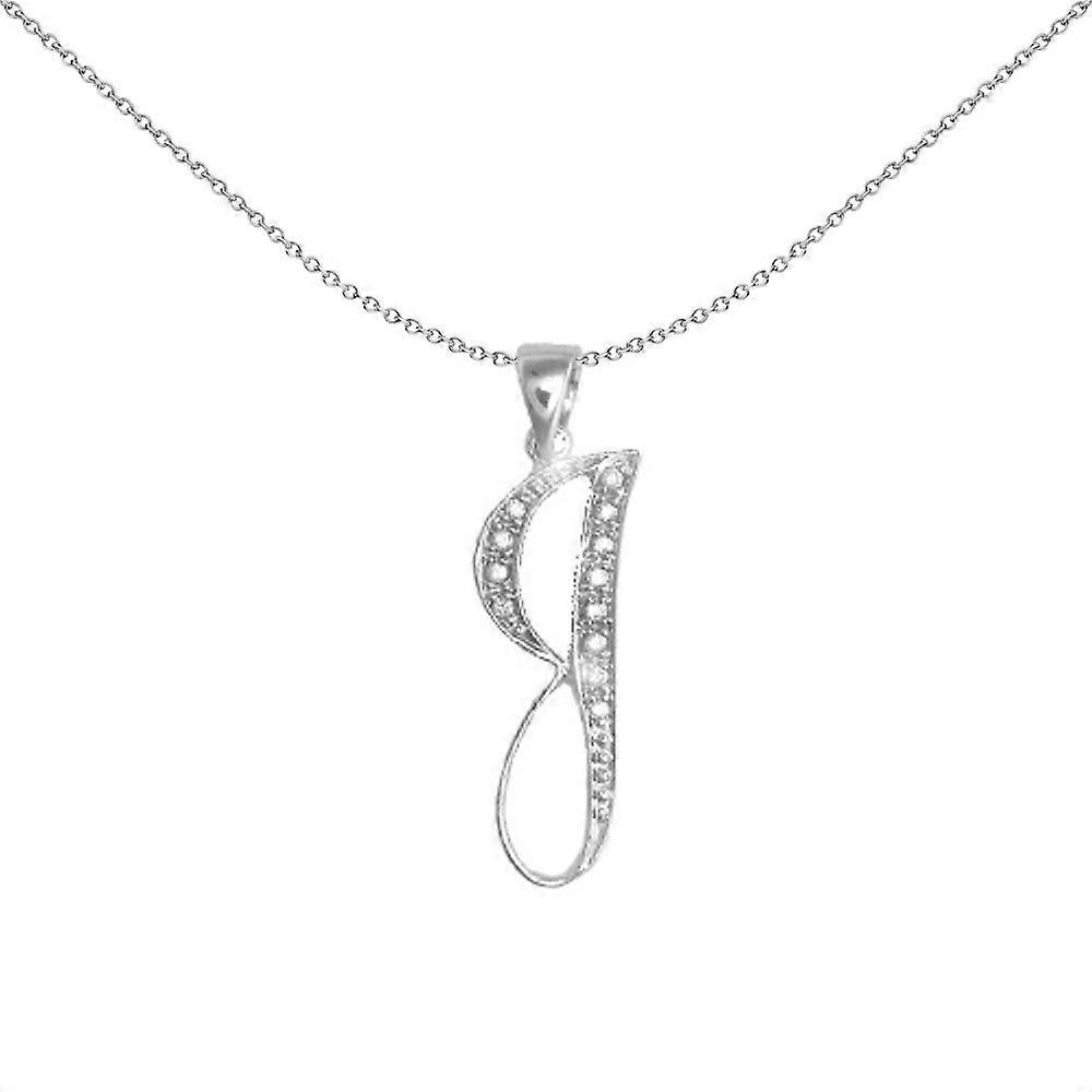 Jewelco London 9ct White Gold Pave Set Round G SI 0.07ct Diamond Identity Script Initial ID Charm Pendant Letter J