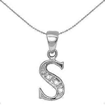 Jewelco London 9ct White Gold Pave Set Round H I2 0.02ct Diamond Identity Dainty Initial ID Charm Pendant Letter S