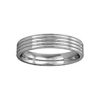 Jewelco London 9ct White Gold - 4mm Essential Flat-Court Ribbed Band Commitment / Wedding Ring