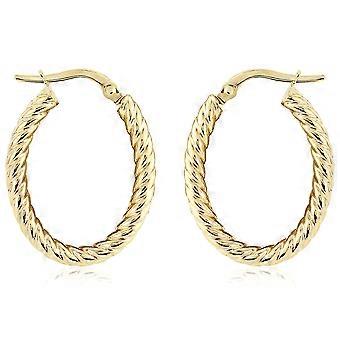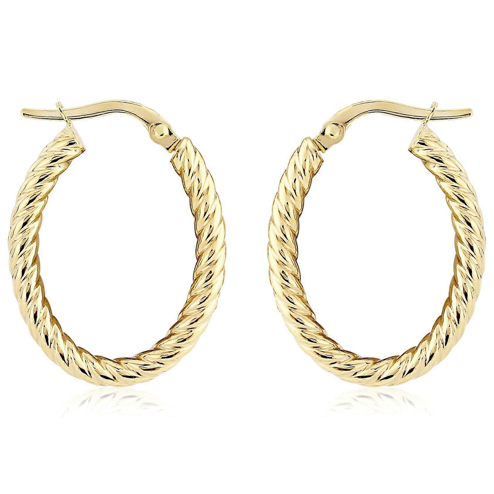 Jewelco London Ladies 9ct Yellow Gold Oval Twist Rope Hoop Earrings - 15x20mm