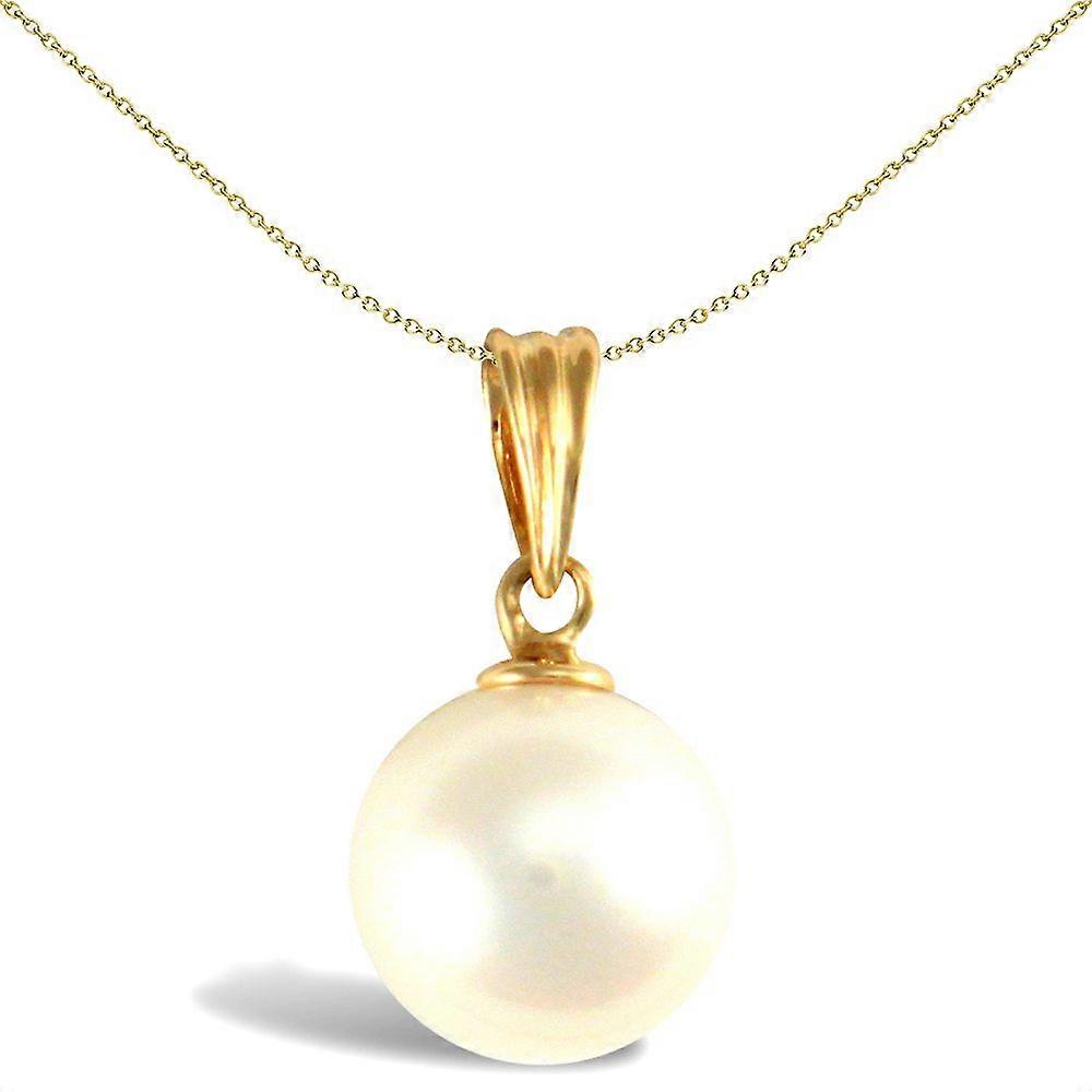 Jewelco London Ladies 9ct Yellow Gold Seawater Cultured Akoya Pearl Full Moon Pendant 8mm
