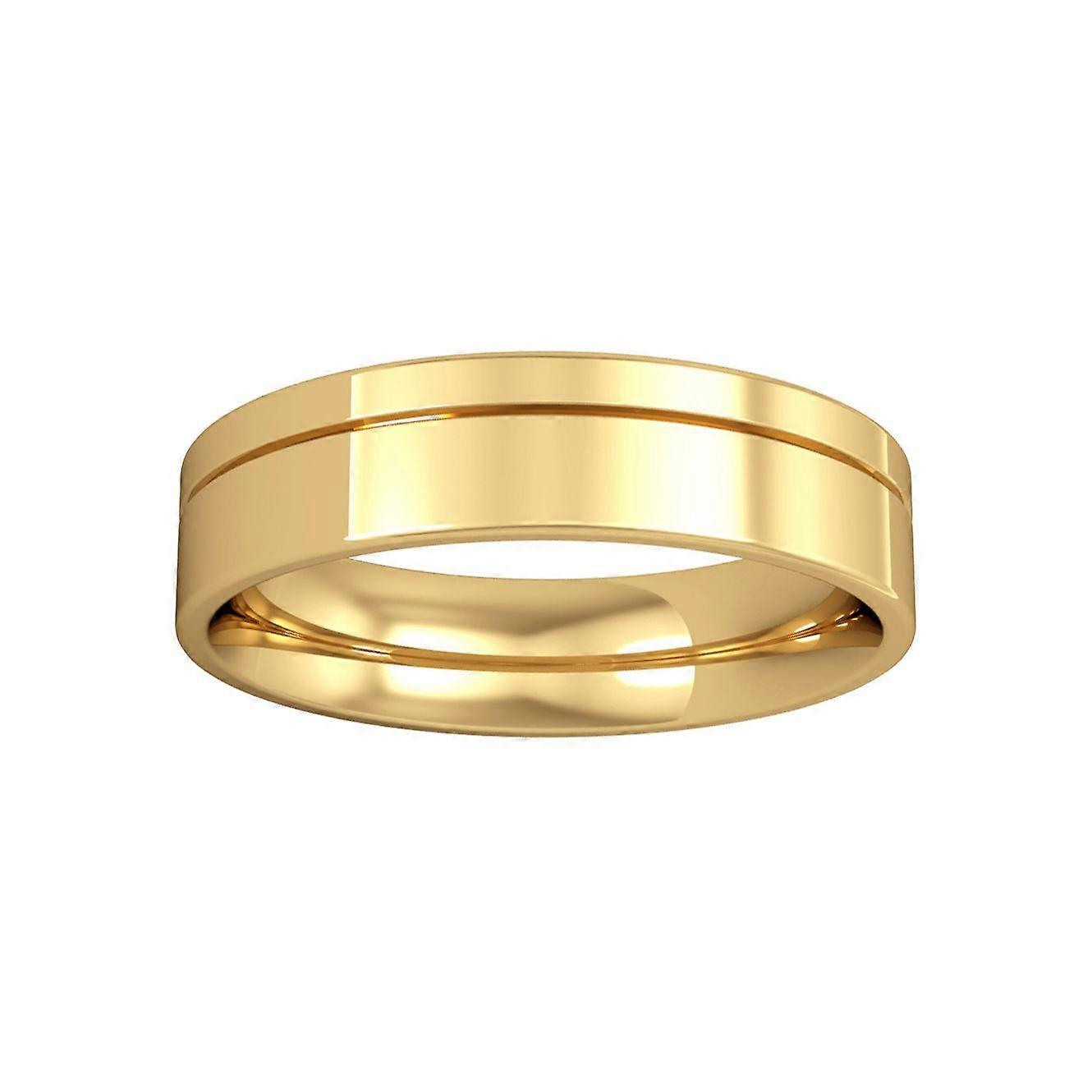 Jewelco London 18ct Yellow Gold - 5mm Essential Flat-Court with Fine Groove Band Commitment / Wedding Ring