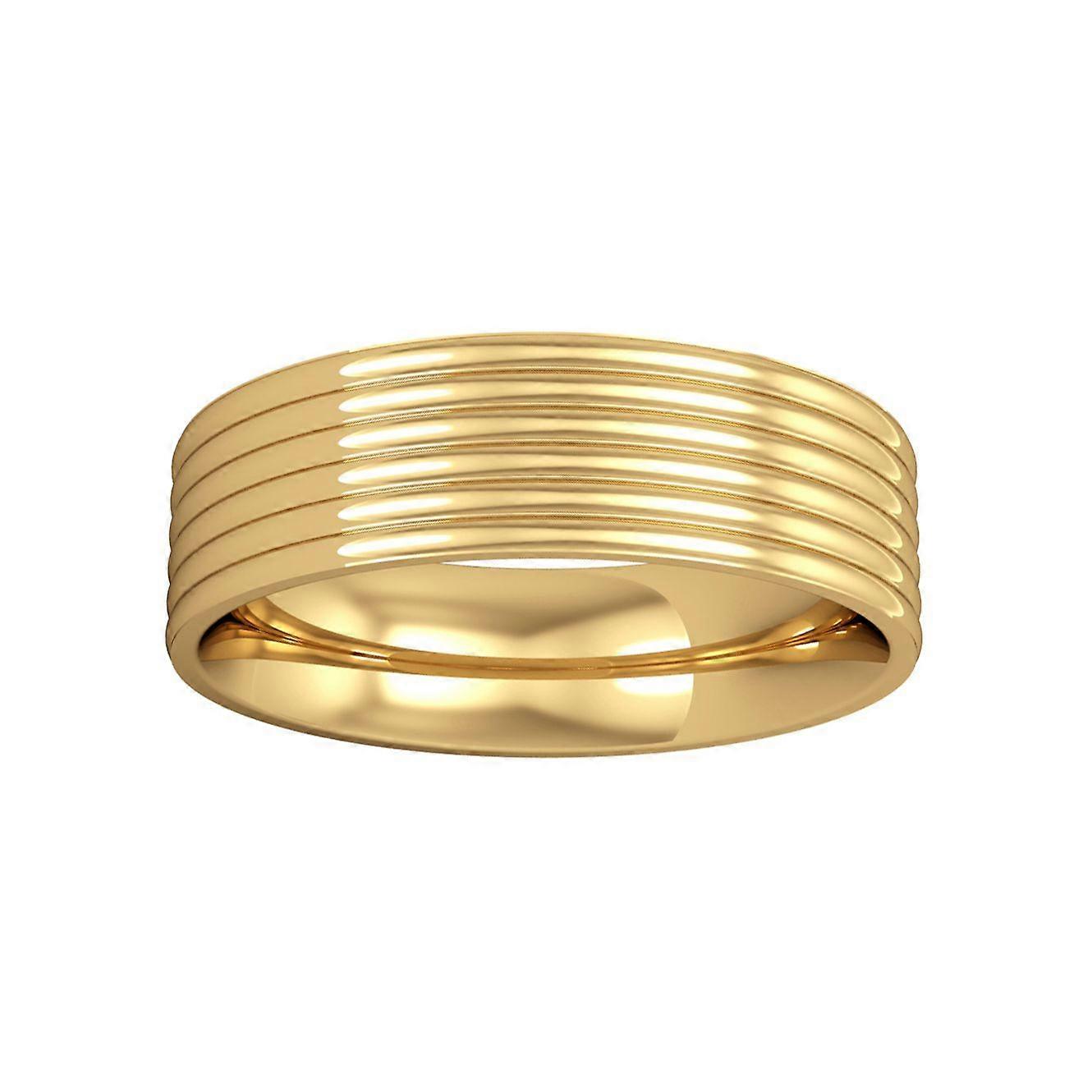 Jewelco London 18ct Yellow Gold - 6mm Essential Flat-Court Ribbed Band Commitment / Wedding Ring
