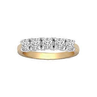 Jewelco London Solid 18ct 2 Colour Gold 4 Claw Round G SI1 1ct Diamond 5 Stone Pentalogy Eternity Ring 4mm