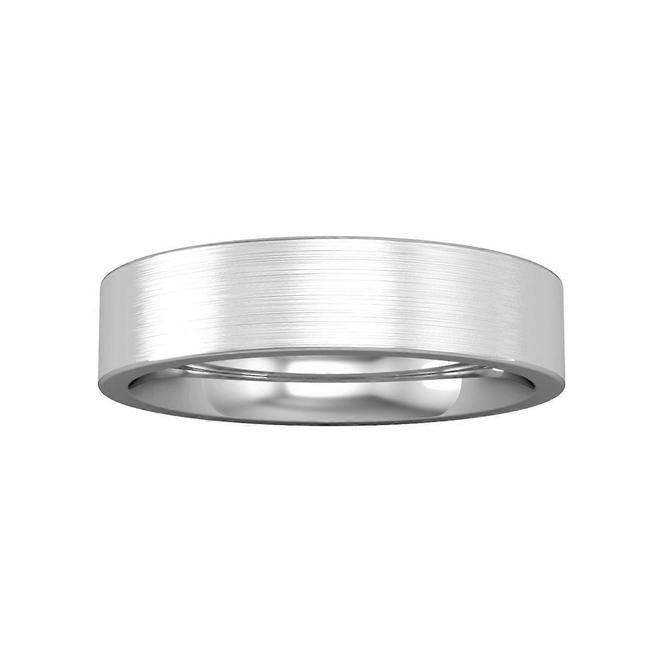 Jewelco London Platinum 5mm Flat Court Premium Satin-Brushed Wedding Ring