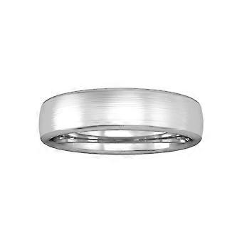 Jewelco London 18ct White Gold 5mm Bombe Court Premium Brushed Wedding Ring