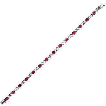 Jewelco London 18ct White Gold 4 Claw Set G SI 0.08ct Diamond and Oval Red 6.3ct Ruby Infinity Tennis Bracelet 4.2mm