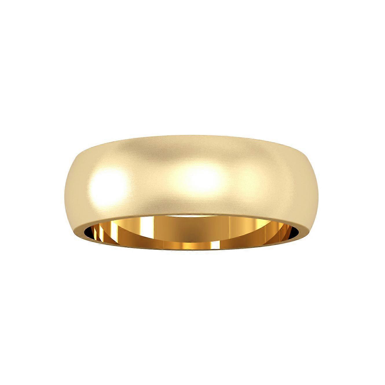 Jewelco London 9ct Yellow Gold 6mm D-Shaped Satin-Brushed Wedding Ring