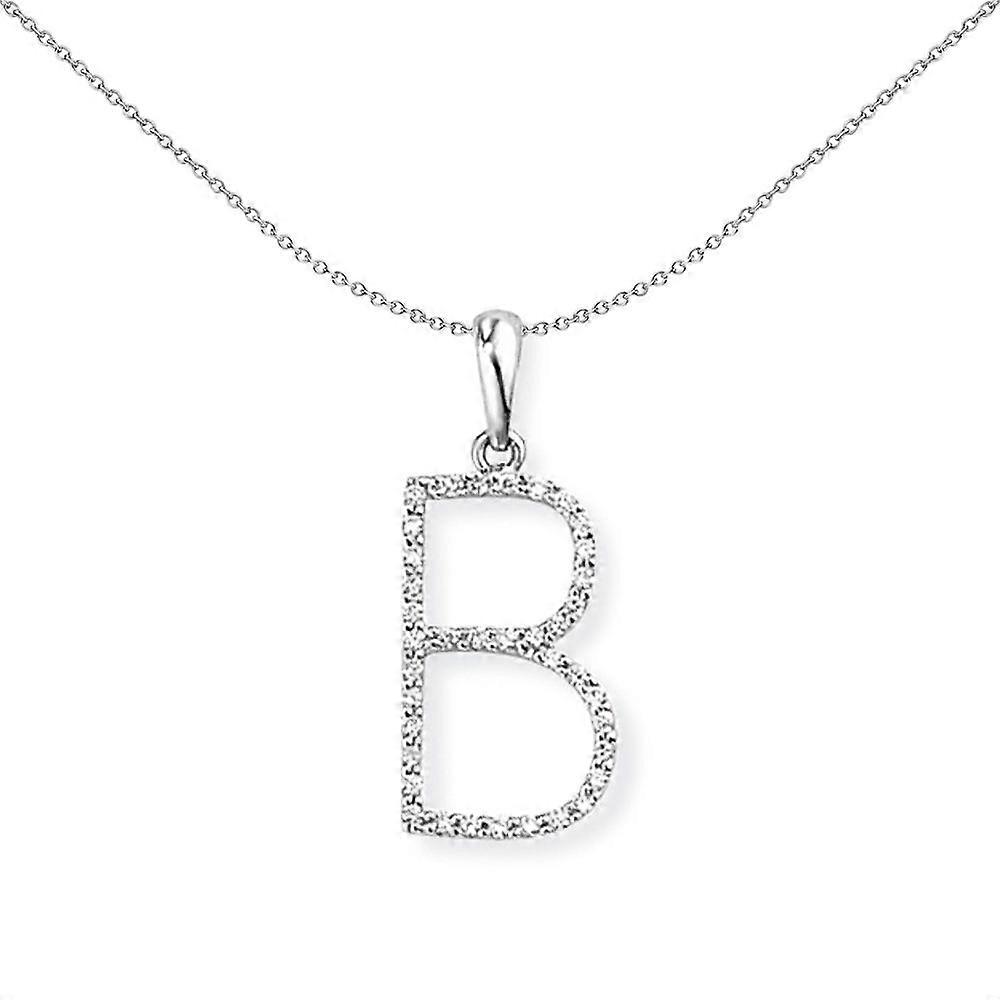 Jewelco London 18ct White Gold Pave Diamond Initial Charm Pendant Letter B 8mm x 21mm