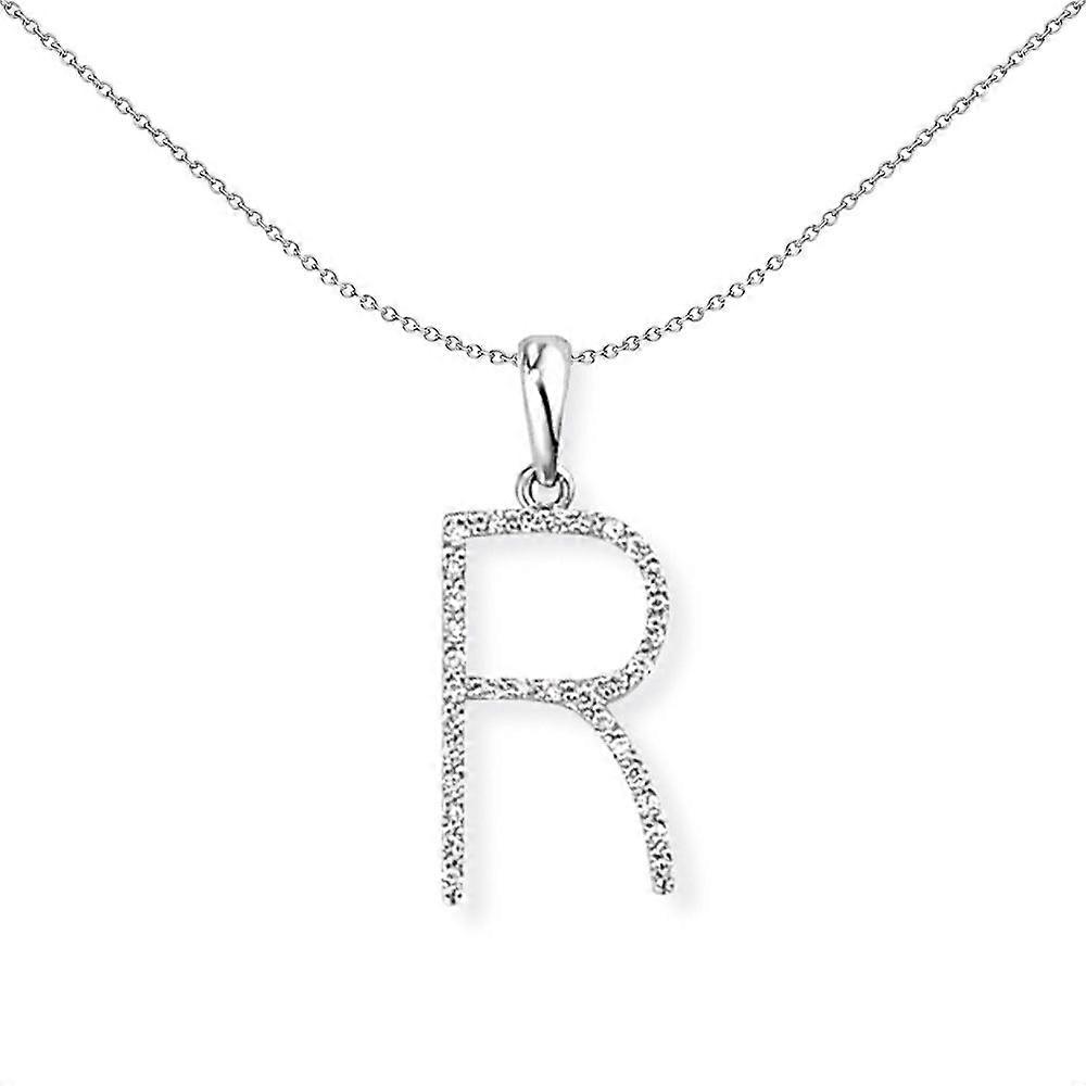 Jewelco London 18ct White Gold Pave Diamond Initial Charm Pendant Letter R 8mm x 20mm