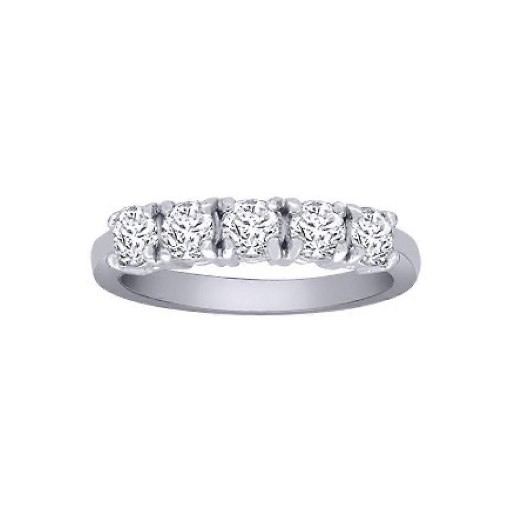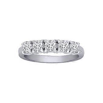 Jewelco London Solid 18ct White Gold 4 Claw Round G SI1 1ct Diamond 5 Stone Pentalogy Eternity Ring 4mm