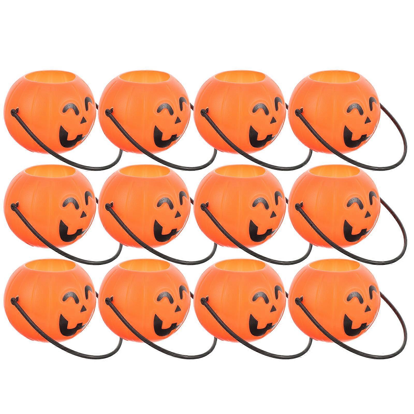 Funny Design Pumpkin Pail 12Pcs Plastic Storage Ideal for Children Halloween Carnival Decoration