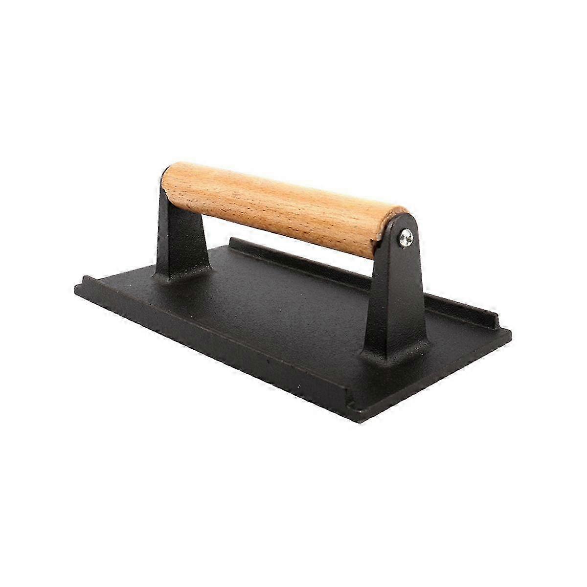 Kitchen Heavy Cast Flat Iron Steak Weight/Bacon Press with Wooden Handle, Grill Press