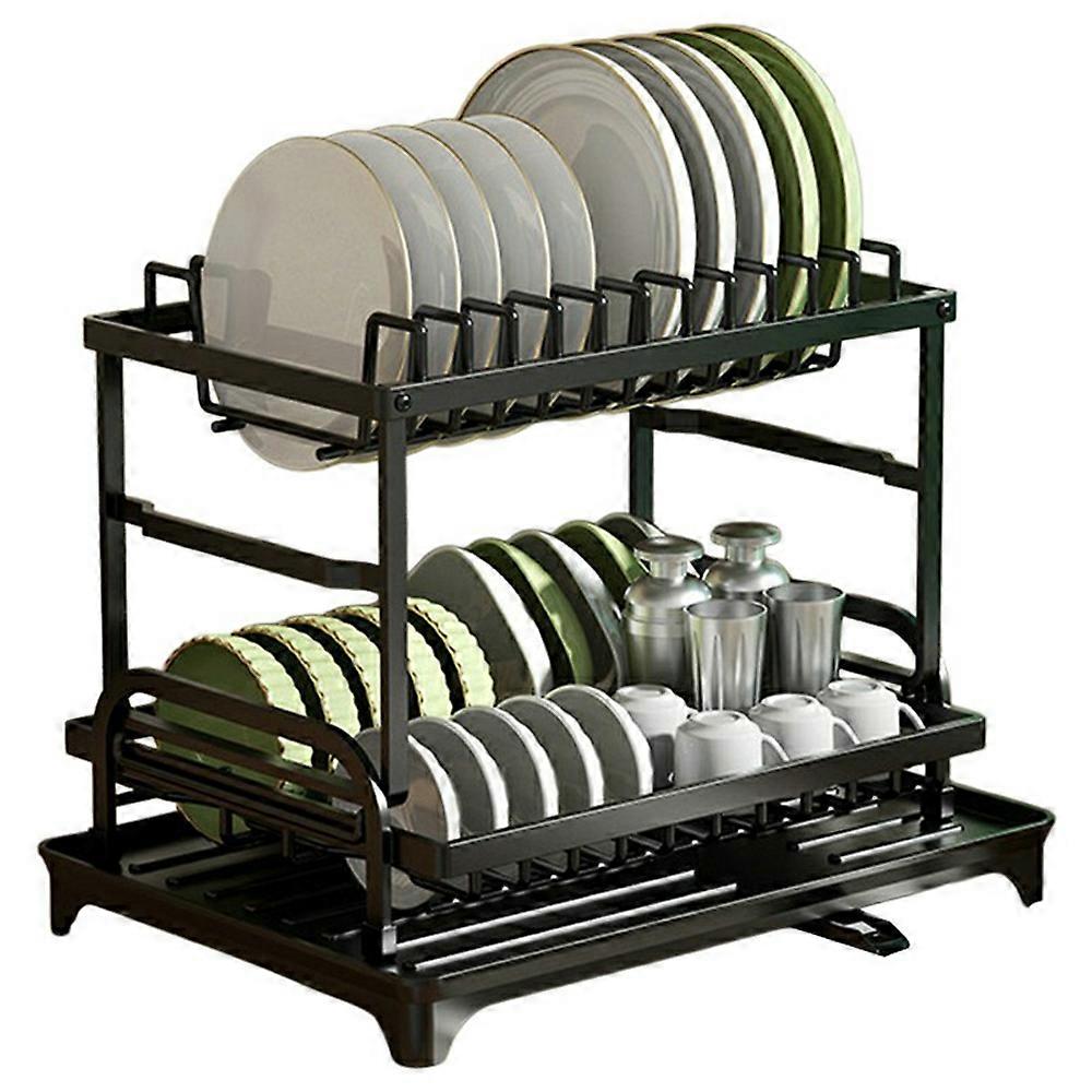 Kitchen Dish Drying Rack 2-Tier 40cm Width Multifunctional Shelf Drainer Kitchen Utensils Organizer Black
