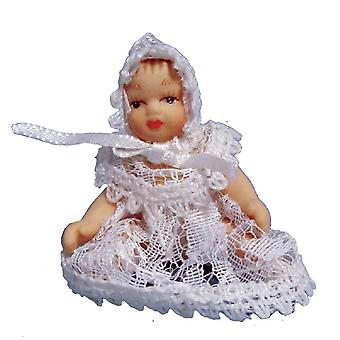 Κούκλες Σπίτι βικτοριανό μωρό σε λευκή δαντέλα μινιατούρα πορσελάνης άνθρωποι