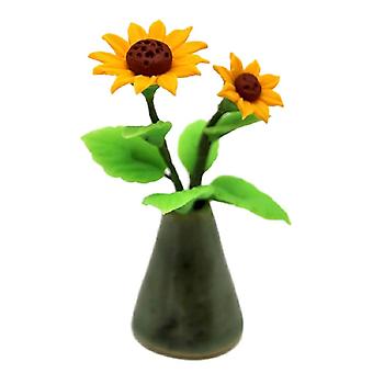 Κούκλες σπίτι κίτρινα ηλιοτρόπια σε βάζο λουλούδι εμφάνιση μικροσκοπικό αξεσουάρ διακόσμηση