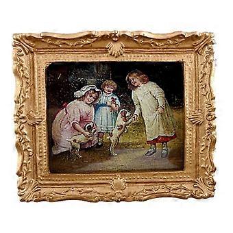 Κούκλες Σπίτι Παιδιά και Κουτάβια εικόνα ζωγραφική χρυσό πλαίσιο μικρογραφία