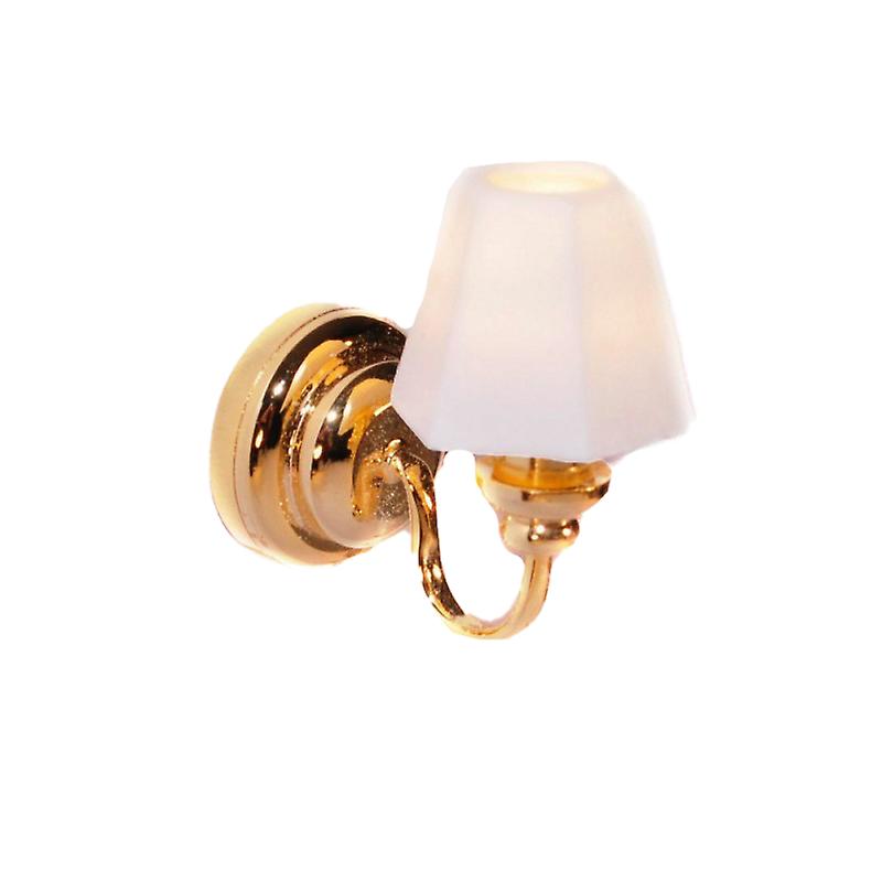 Dolls House Wall Light White Hexagonal Shade Brass Led Lighting Battery Lamp