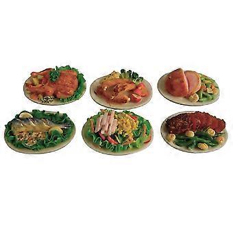 Κούκλες σπίτι 6 πιάτα των τροφίμων βόειο κρέας χοιρινό κρέας κλπ μινιατούρα τραπεζαρία αξεσουάρ