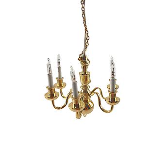 Dolls House Elite 6 Arm Brass Chandelier Candle Bulbs 12v Electric