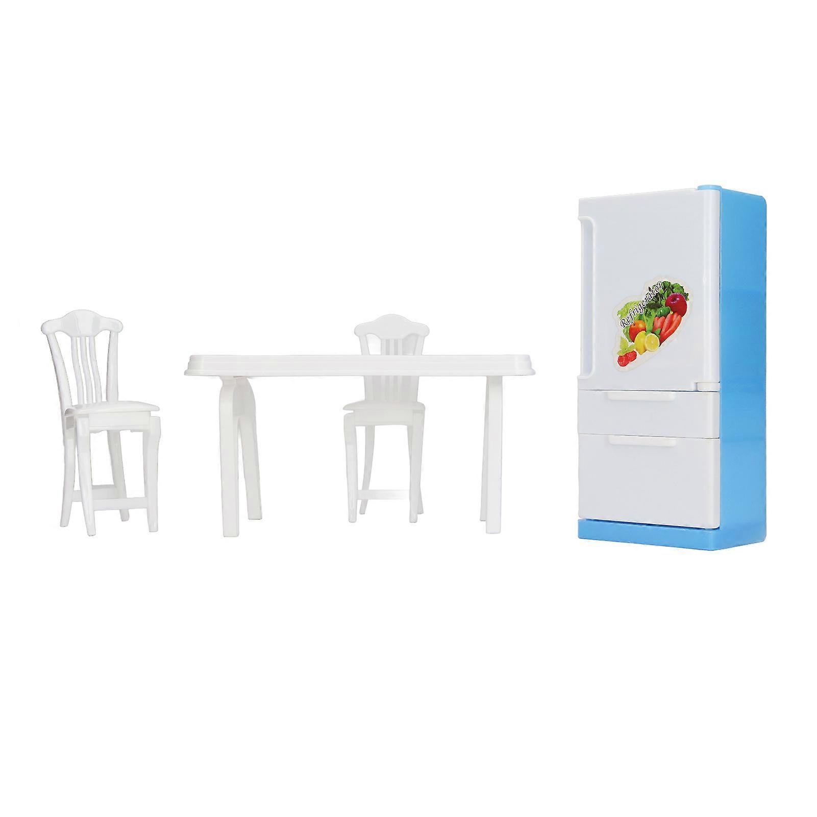 Dollhouse Refrigerator Table Miniature Pretend Play Game Decoration Doll Mini Fridge Chair Toy for Kitchen Girl