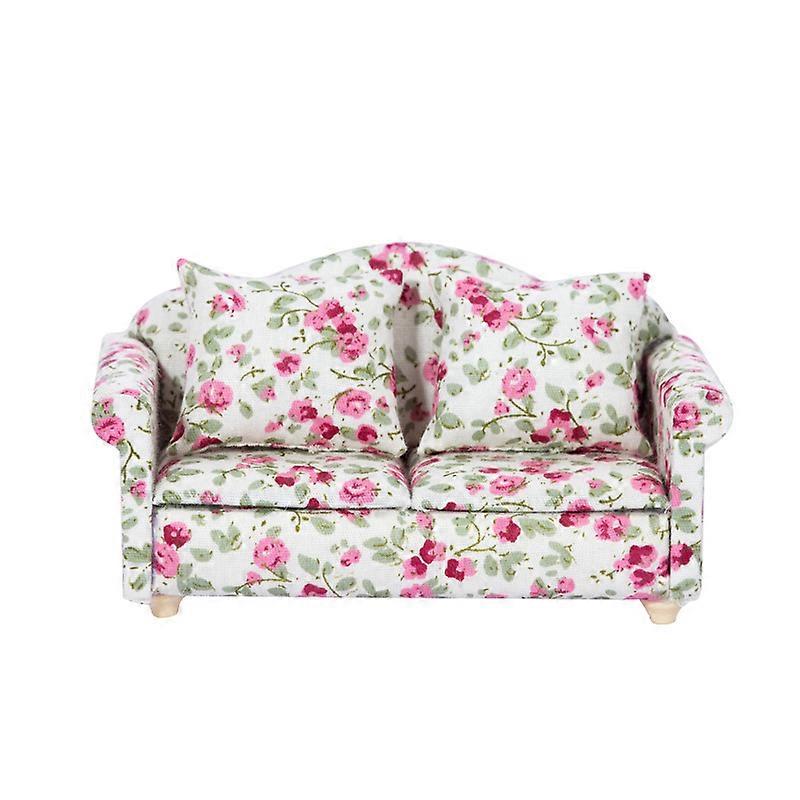 Dollhouse 1:12 Floral Pattern Mini Furniture Loveseat (Style A)