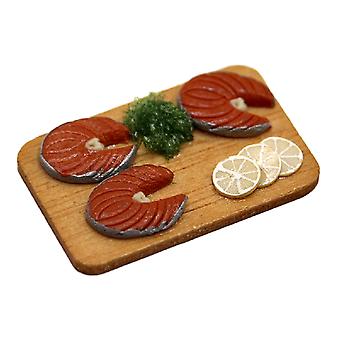 κουκλών σπίτι σολομός με λεμόνι επί του σκάφους μικροσκοπικό κουζίνα αξεσουάρ τροφίμων 1:12