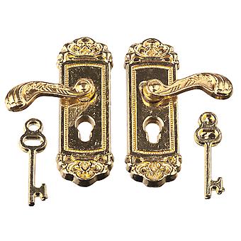 κουκλών σπίτι 2 χάλκινες λαβές πόρτα με κλειδιά μικροσκοπικά πόμολα πόρτα έπιπλα 1:12