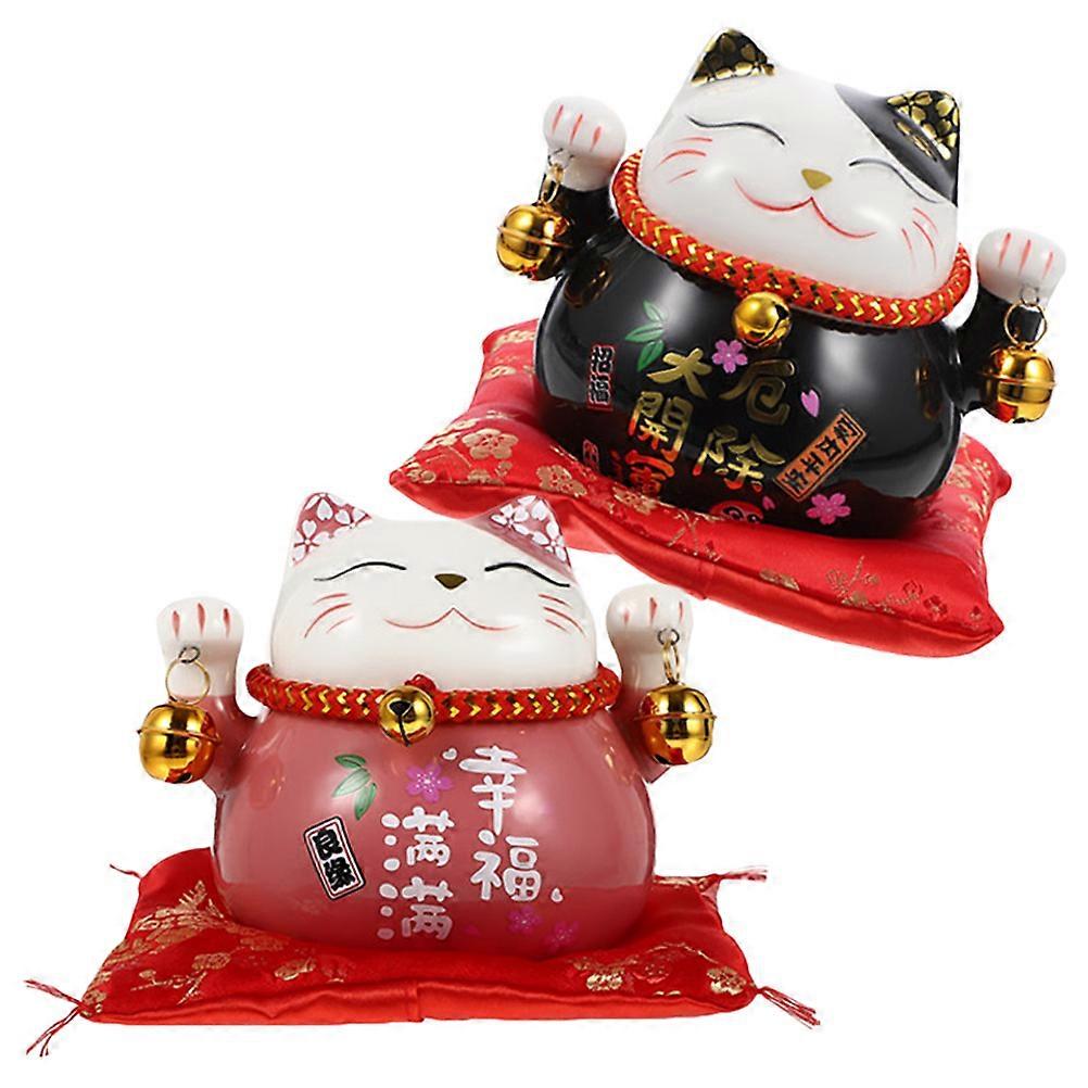 Fortune Cat Statue Piggy Bank Maneki Neko Saving Bank Ornament For Home Decoration Pink Ceramic Coin Storage 2Pcs