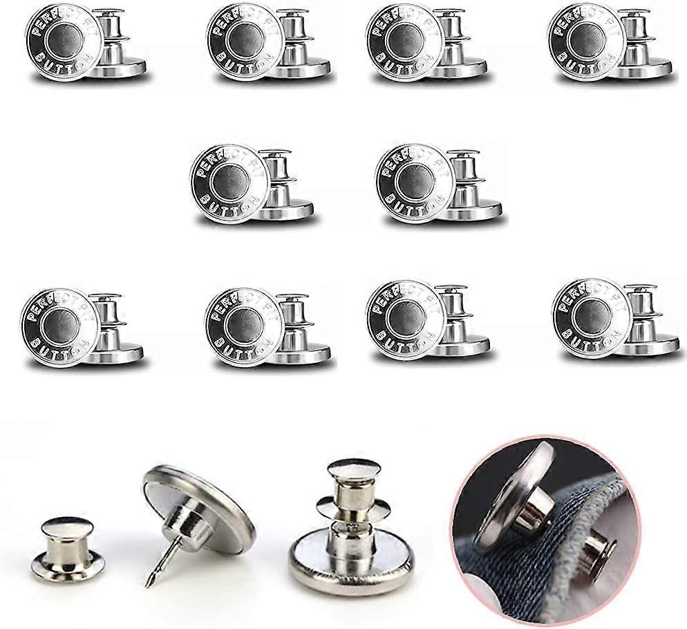 10 Pieces Jeans Button, 17mm Detachable Metal DIY Button Retractable Adjustable, Fitted, Jeans Snap Button for Repairing Pants, Coat, Jackets,2024 Pin