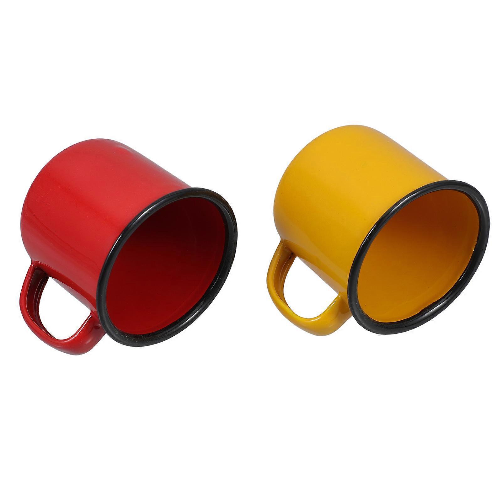Enamel Mugs Vintage Drinking Cups Household Coffee Mugs Red Use 2Pcs