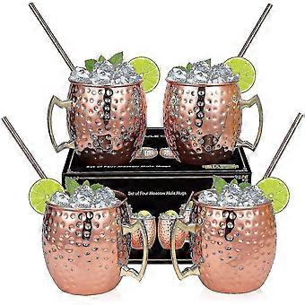 Κούπες για μπολ ξυρίσματος Κούπες Moscow Mule από χαλκό - Σετ 4 ωρών Κούπες από χαλκό κατασκευασμένες από καθαρό συμπαγές χαλκό, σετ δώρου 16 ουγγιών