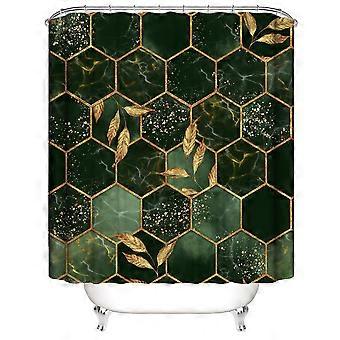 Shower Curtain Abstract Emerald Geometric Bathroom Shower Curtain Vintage Green Marble Texture Golden Leaves Bath Curtain Fabric Bathroom Decor Curtai