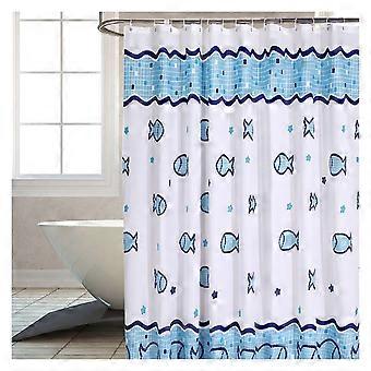 Ocean Fish Pattern Shower Curtain, Thickened Polyester Bathroom Hanging Curtain, Summer Sea Theme