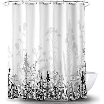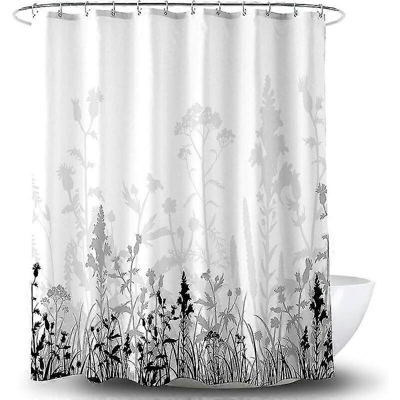 Shower Curtain 180x210cm Black And Gray Floral Bathroom Fabric Shower Curtain With Hooks Decorative Bathroom Accessories Waterproof Reinforced Metal G