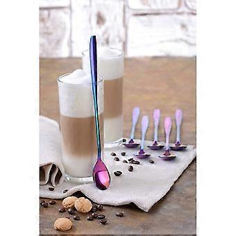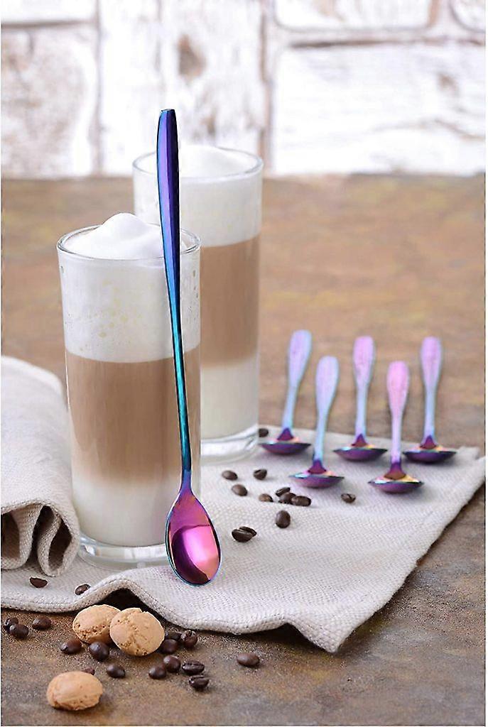 6-Piece 19cm Rainbow Long Spoons, for Latte Macchiato/Yogurt/Cocktail, Polished Stainless Steel, Dishwasher Safe
