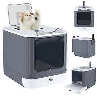 Cat litter box with shovel, plastic cat toilet, sliding drawer design, front door in and top door out